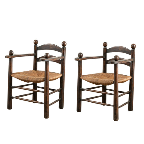 Mid Century French Ladder Back Armchair with braided rope seat