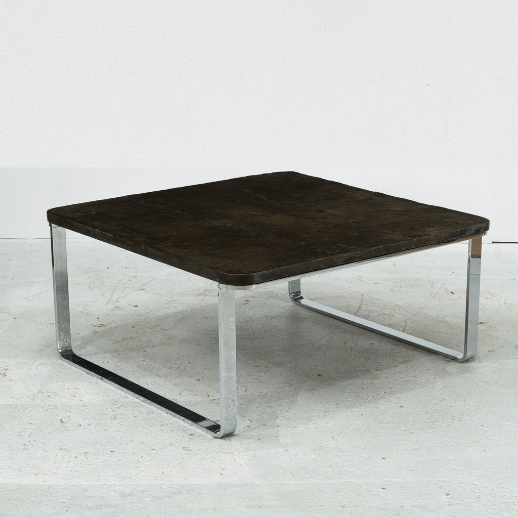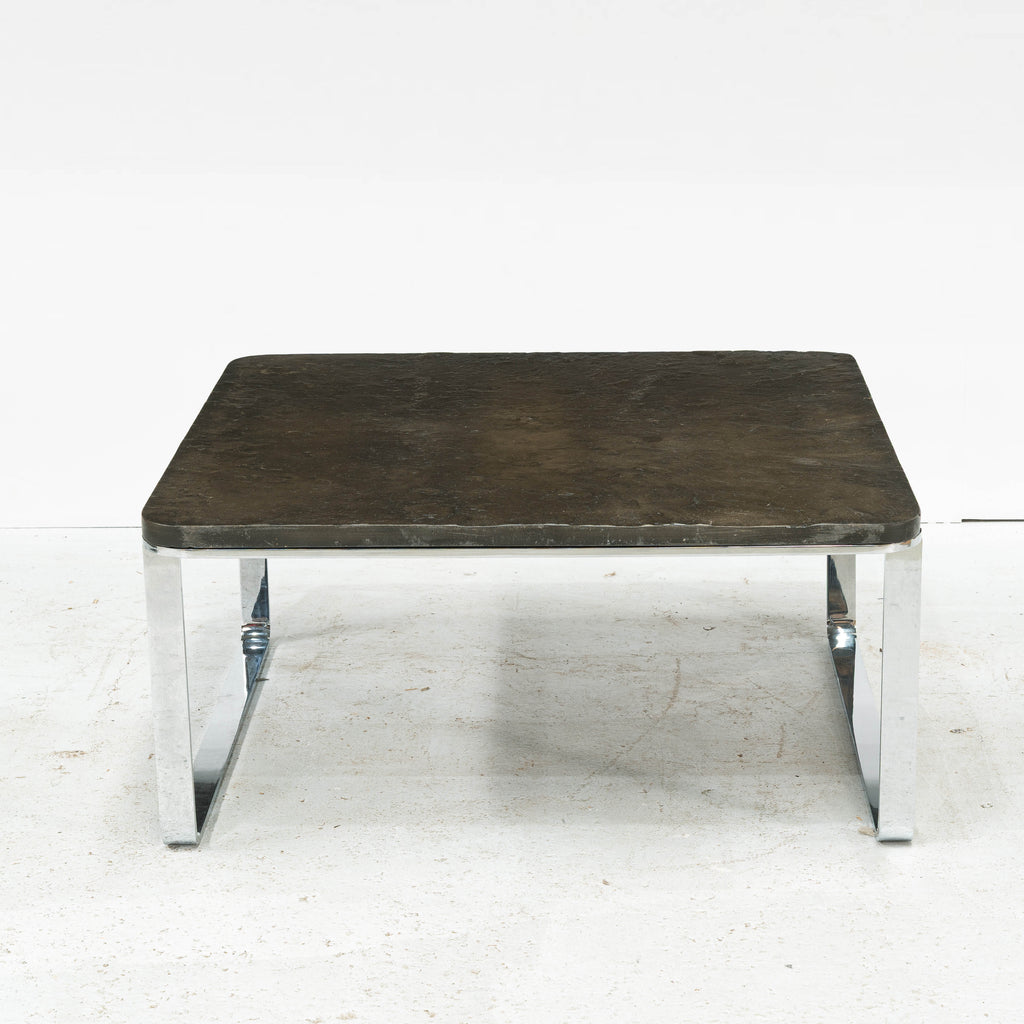 Coffee table by the German designer Peter Draenert for Studio Draenert from the 1970s. The table has a heavy chromed steel U-base frame with a 4 cm thick slate stone top. Beautiful decorative high quality piece.