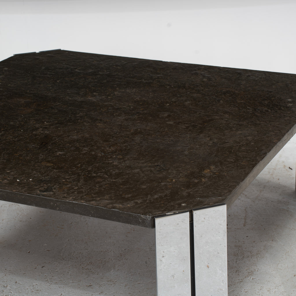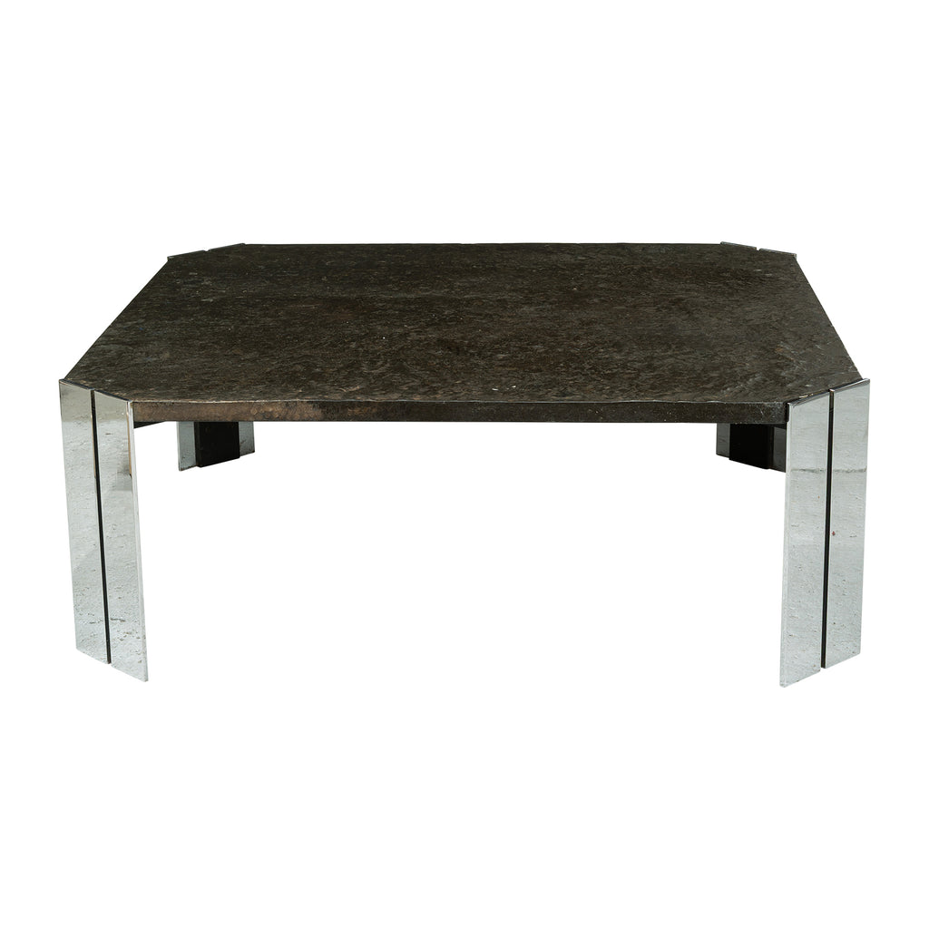 A distinguished example of 1970s European modernism, this octagonal coffee table combines a textured slate top with a polished chrome base.