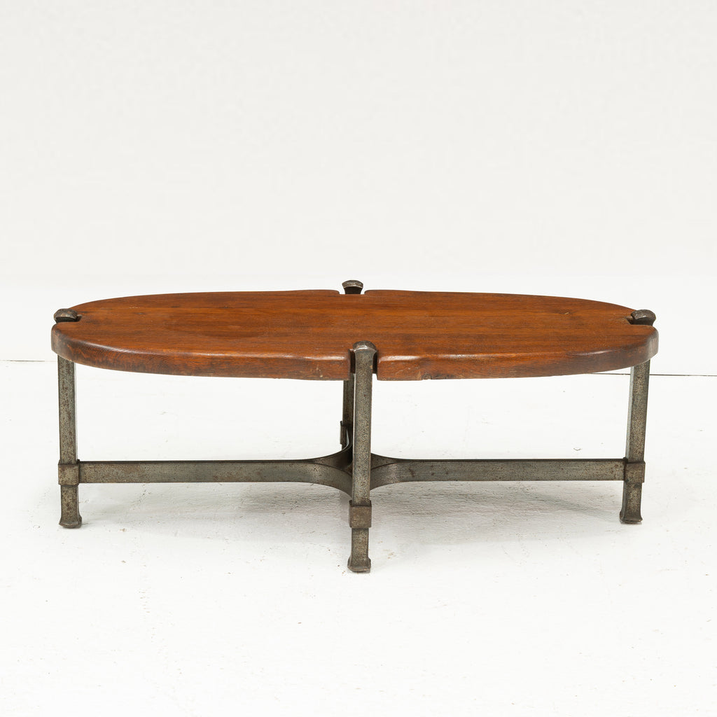 1970s Brutalist Wrought Iron and Oak Coffee Table