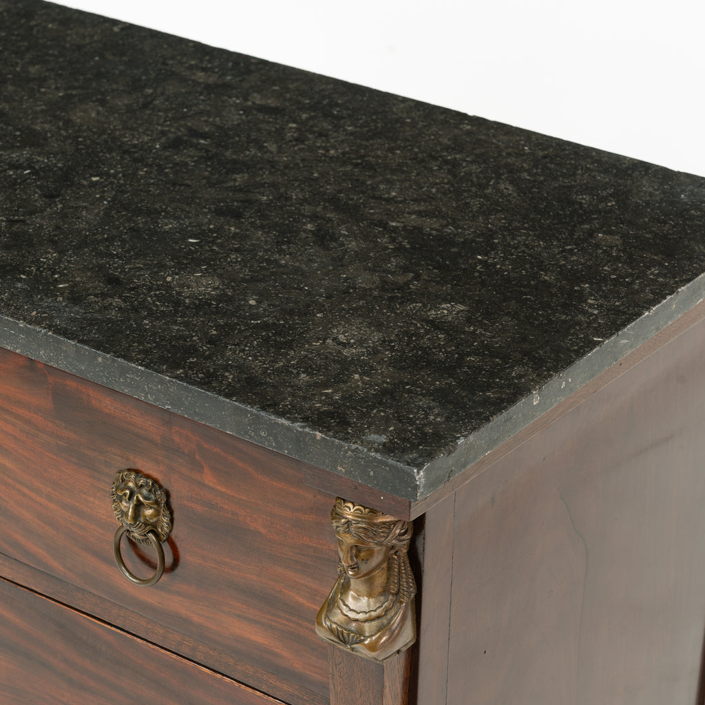 A Empire Mahogany Commode with Black Fossil Marble Top