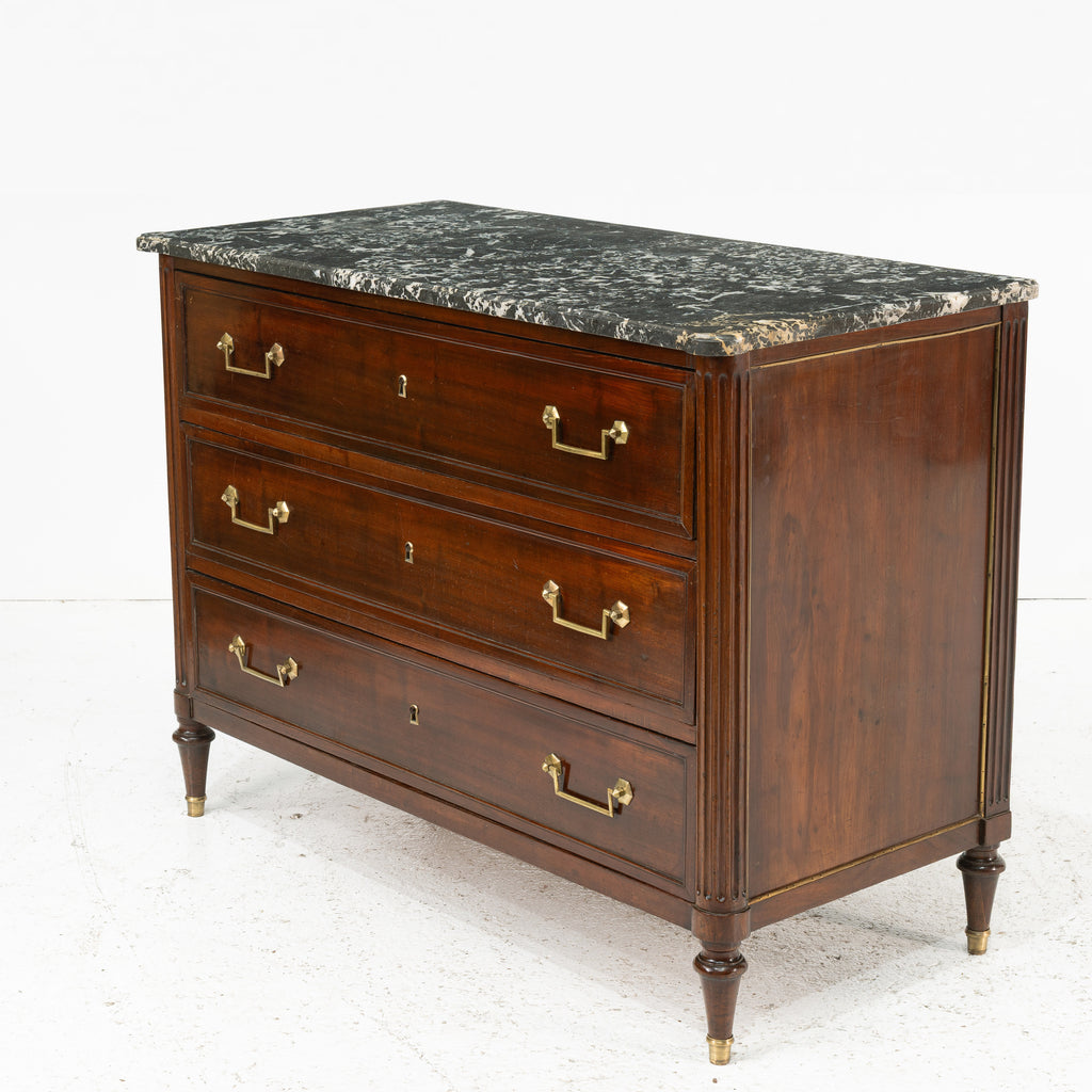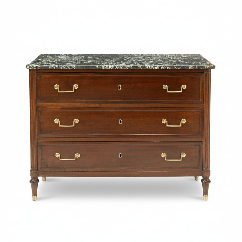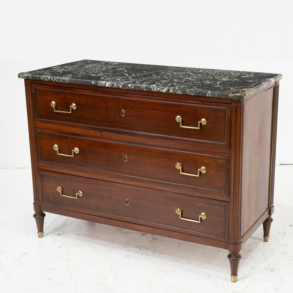 Louis XVI Mahogany Commode with Grey Sainte Anne Marble Top