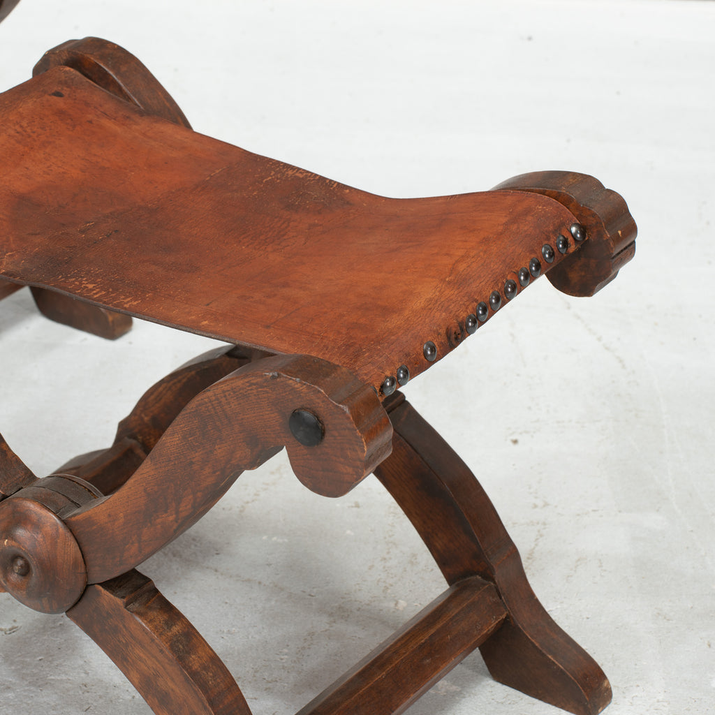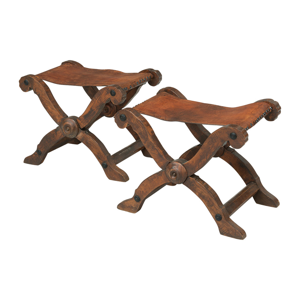 Pair of Spanish Leather Topped X Stools